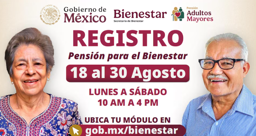 Según el calendario oficial de la Secretaría de Bienestar, este lunes 25 de agosto corresponde el registro a los adultos mayores cuyos primeros apellidos comienzan con las letras A, B y C. La atención se realiza en los módulos instalados en todo el país, operando de lunes a sábado, de 10:00 a 16:00 horas.