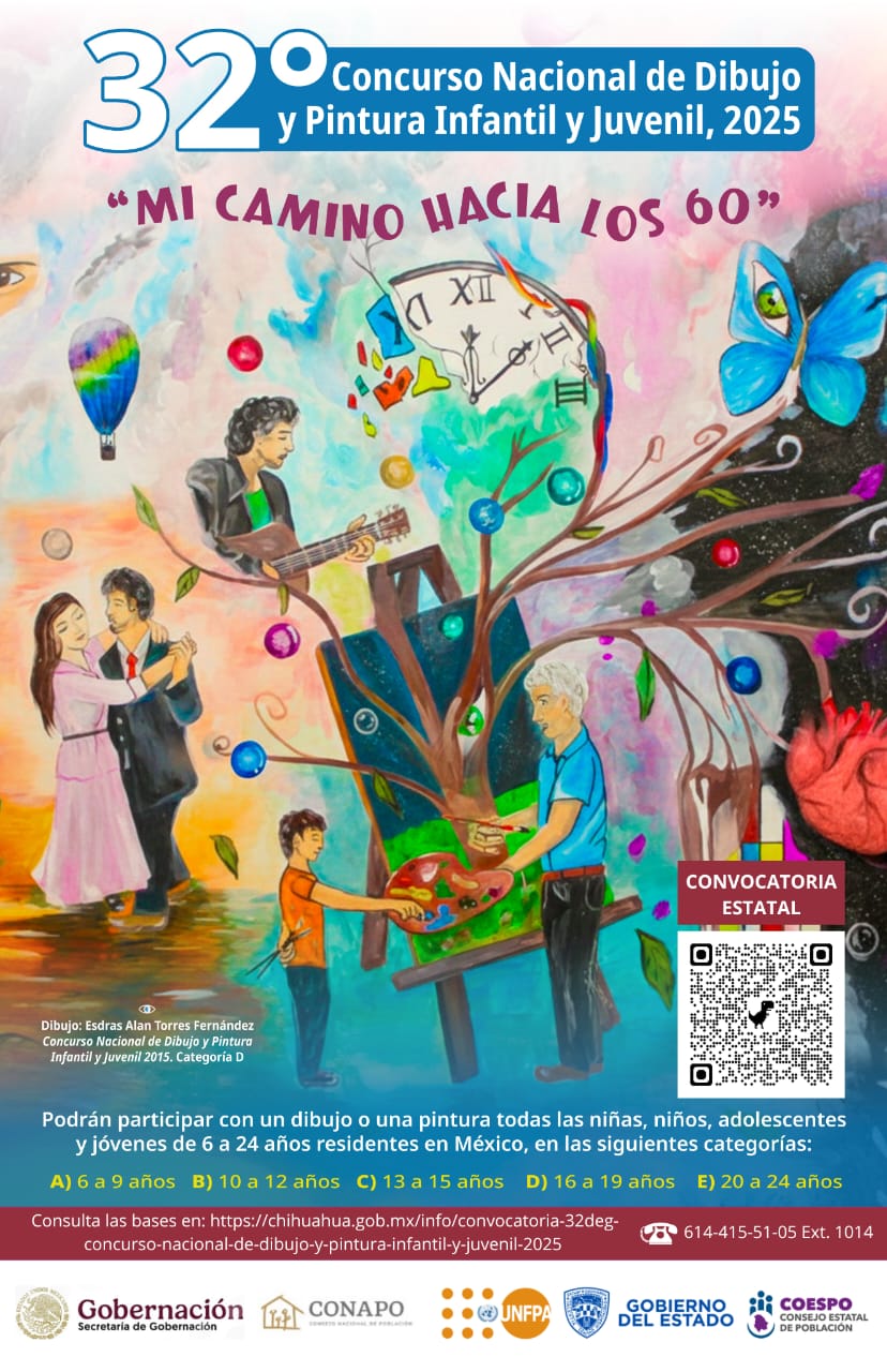 El Consejo Estatal de Población (Coespo) invita a niñas, niños, adolescentes y jóvenes chihuahuenses de 6 a 24 años de edad, a participar en la Fase Estatal del 32° Concurso Nacional de Dibujo y Pintura Infantil y Juvenil 2025.