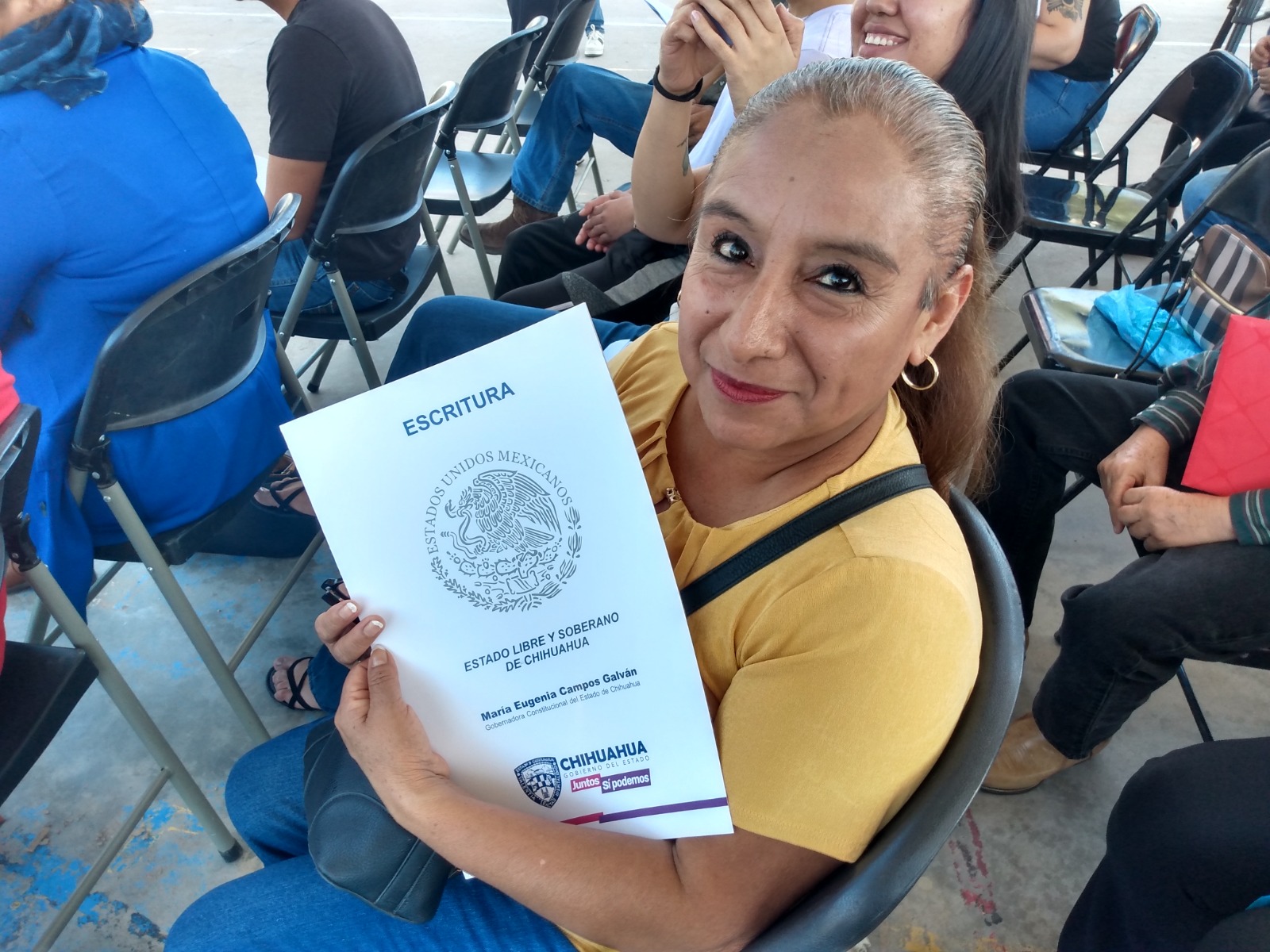 El Gobierno del Estado, a través de la Secretaría de Desarrollo Urbano y Ecología (SDUE) entregó 80 escrituras de propiedad, a familias que habitan en las zonas norte y sur de Ciudad Juárez.