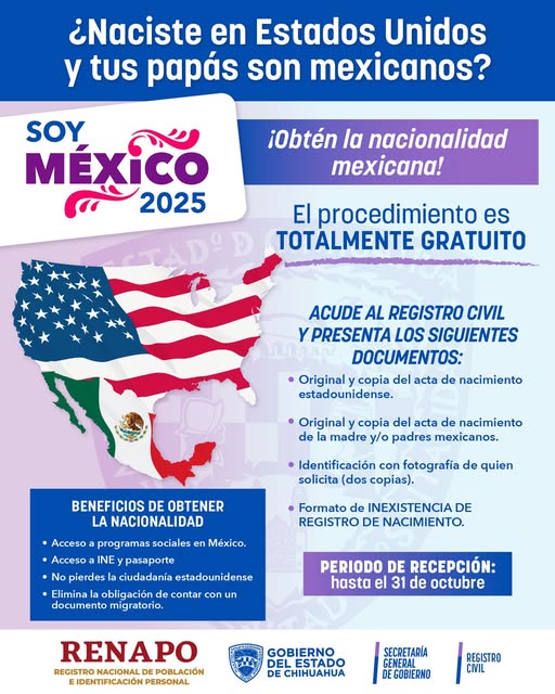 En lo que va del mes de octubre y durante septiembre, alrededor de 2 mil personas han aprovechado el programa de doble nacionalidad “Soy México”, el cual condona los costos de inscripción, apostilla, traducción e inexistencia de acta mexicana.
