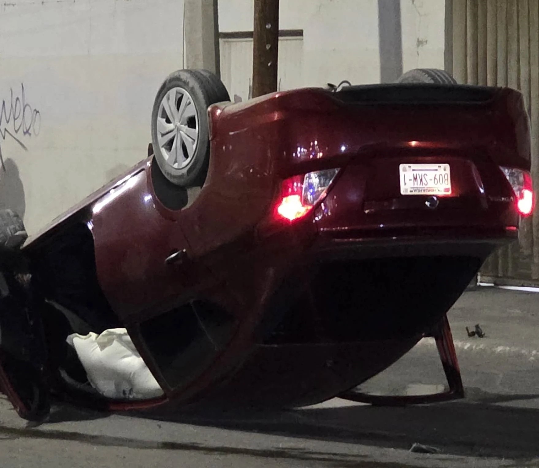 El accidente ocurrió cerca de las 02:00 horas, donde el conductor de un auto Kia Óptima le cerró el paso a un Nissan Versa y lo proyectó contra un poste de Teléfonos de México (Telmex) para después volcar.