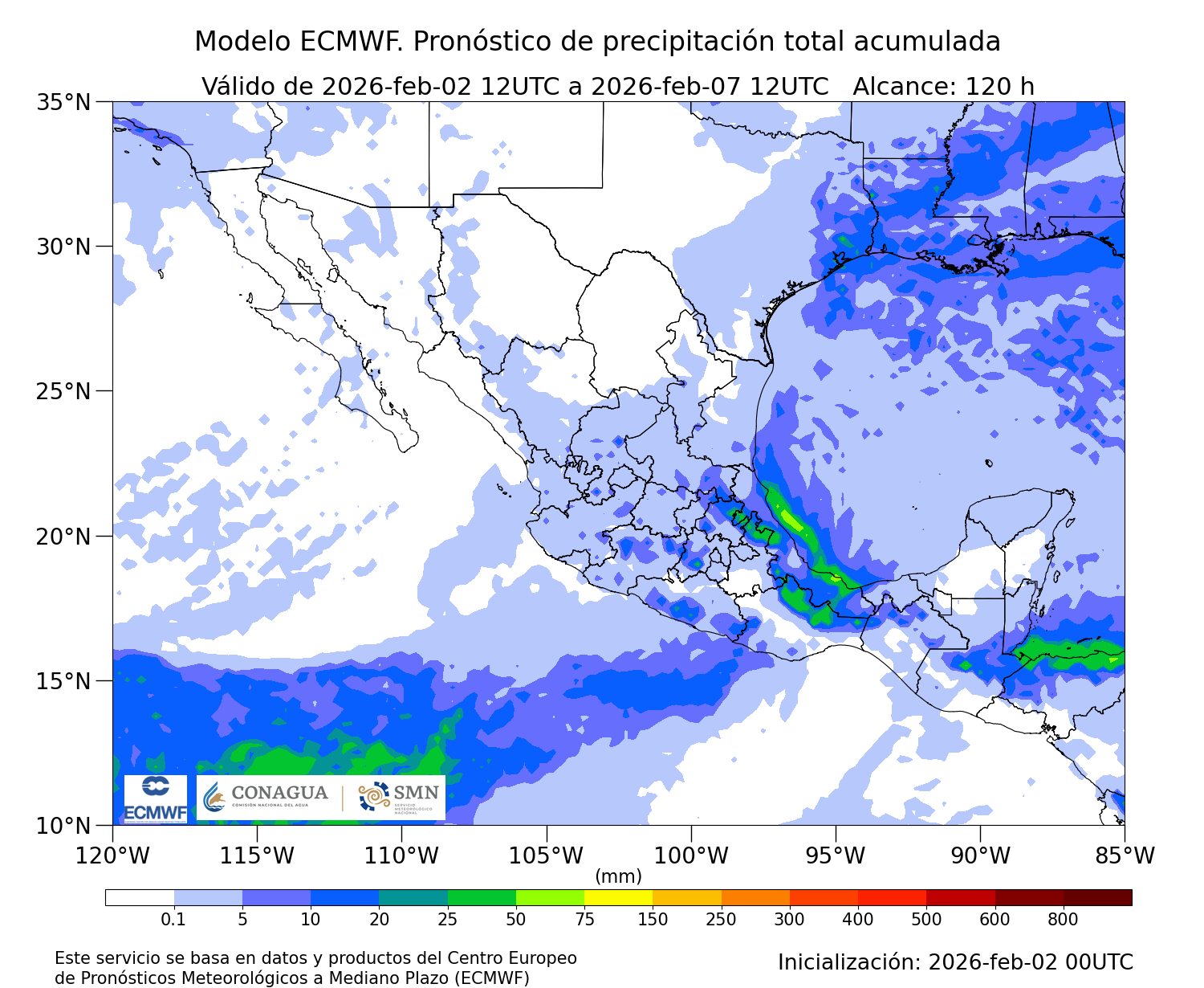 - Lluvias aisladas (0.1 a 5 mm): Tamaulipas, Veracruz (Huasteca Alta), Jalisco, Colima, Estado de México, Chiapas y Quintana Roo.