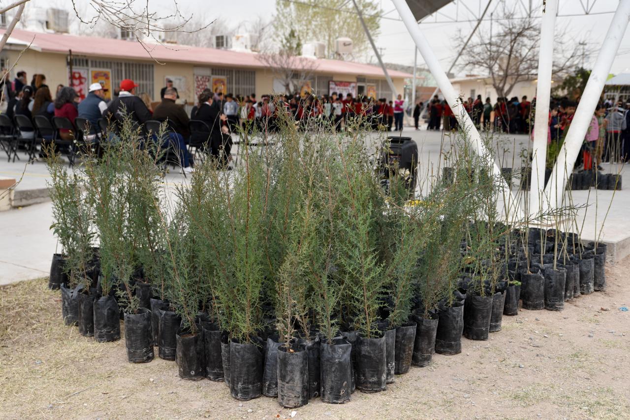 Durante el evento, Carlos Ortiz Villegas, representante de la Oficina de Gubernatura en Ciudad Juárez, señaló que esta acción fortalece la conciencia ambiental y la responsabilidad social desde edades tempranas, al impulsar espacios con mayor sombra, aire limpio y condiciones más adecuadas para el aprendizaje.