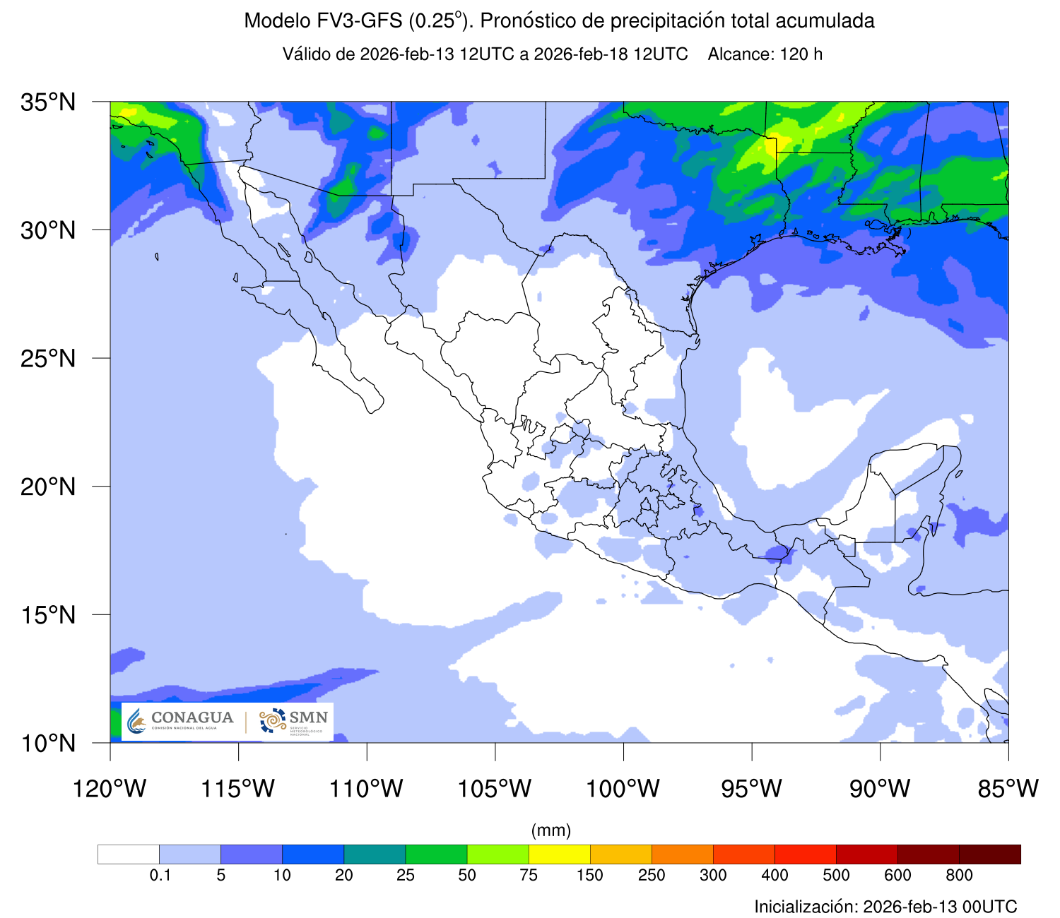 - Lluvias aisladas (0.1 a 5 mm): Chihuahua, Coahuila y Oaxaca.