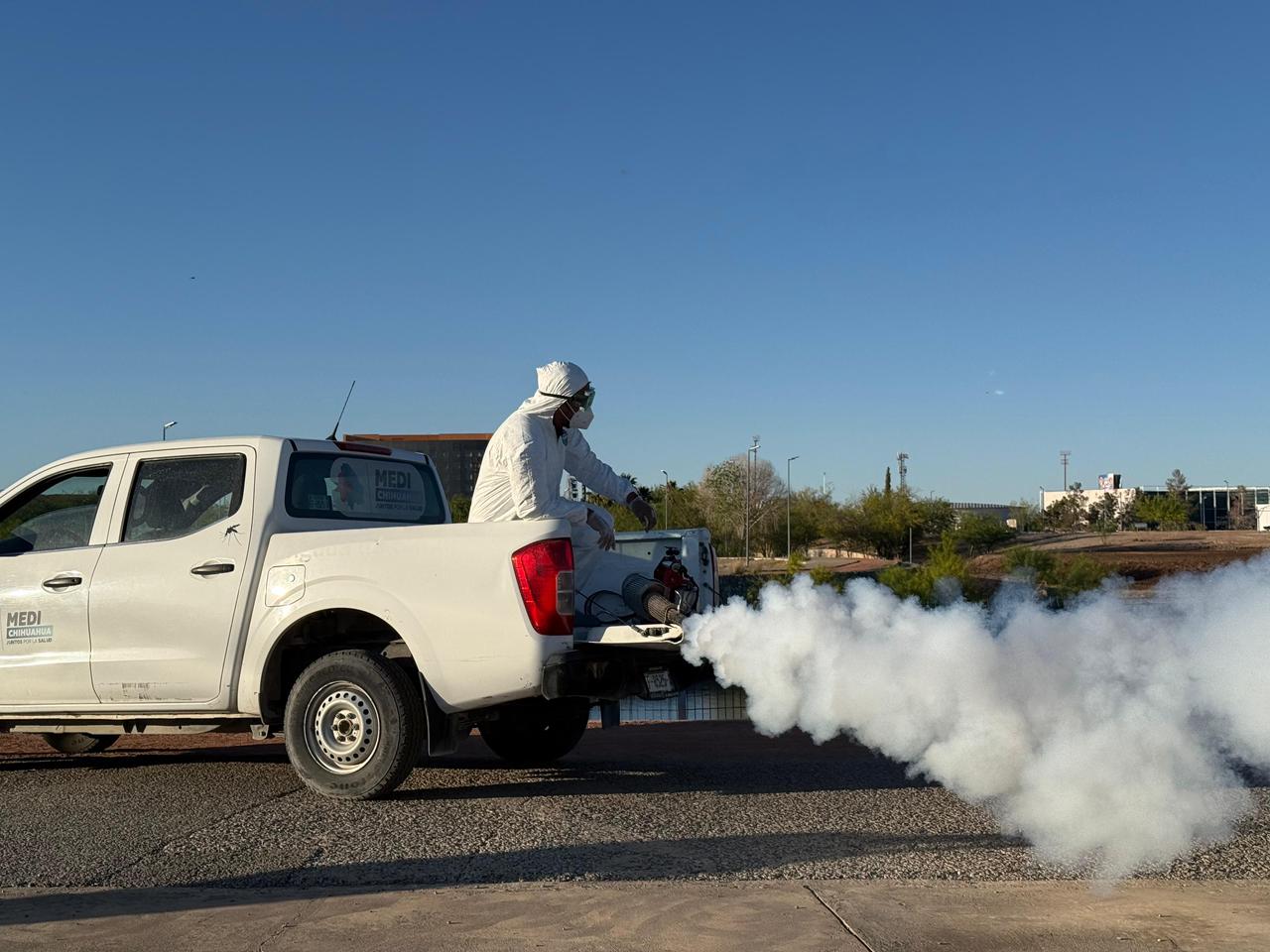 Dicha jornada de fumigación se realizó junto con la Unidad de Investigación Entomológica y Bioensayos del Estado de Chihuahua, región Juárez, y especialistas en el área de Vectores y Zoonosis, para un efectivo combate de insectos y fauna que pueden transmitir enfermedades a las personas.