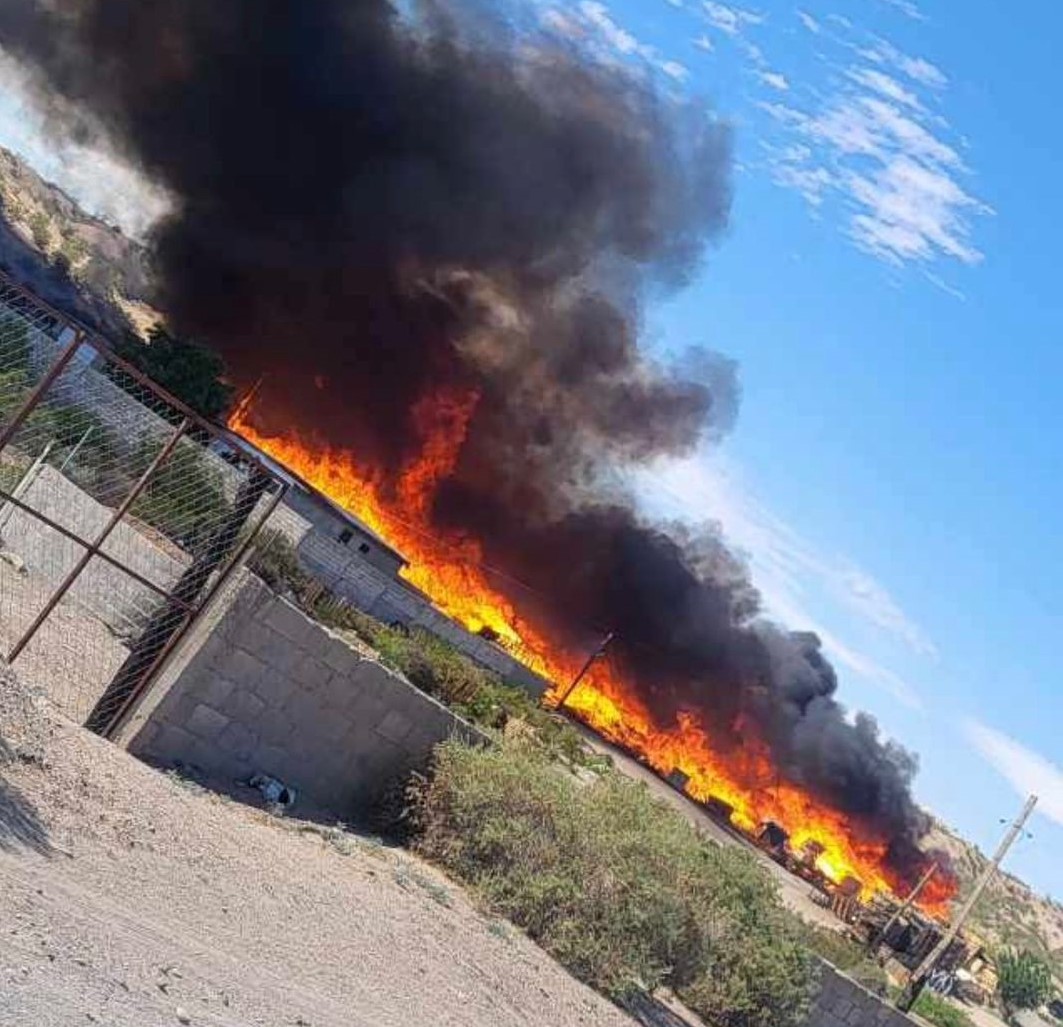 Esta mañana se registró un fuerte incendio en unas tarimeras ubicadas en el poblado de San Isidro en el Valle de Juárez.