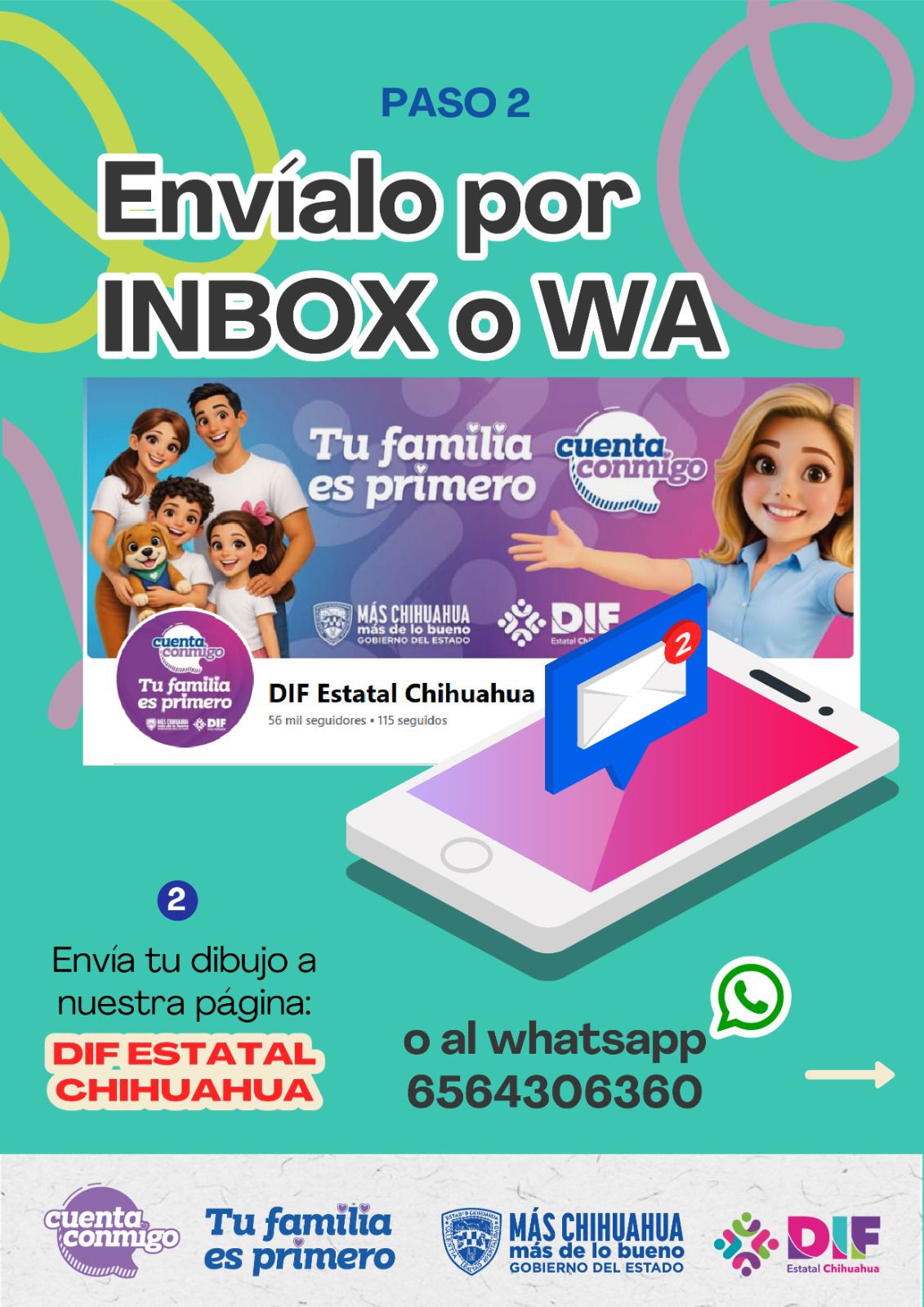 Con el objetivo de facilitar la participación de niñas y niños en el Concurso Infantil de Dibujo “Milo en Familia”, el DIF Estatal informó que se habilitó un número de WhatsApp para el envío de dibujos en Ciudad Juárez y Distrito Bravos: 656 430 6360.