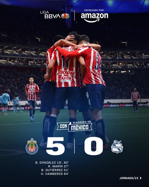 Chivas vivió una noche inolvidable en el Estadio Akron. Chivas no solo gana. Chivas ilusiona, golea, emociona y sueña en grande. Con una contundente goleada de 5-0 sobre Puebla, el equipo de Gabriel Milito no solo confirmó su gran momento, sino que escribió una nueva página en su historia al alcanzar los 34 puntos, una cifra que en tres décadas solo unos cuantos habían logrado. Hoy, este grupo se instala entre los grandes… y aún tiene margen para ir por más.