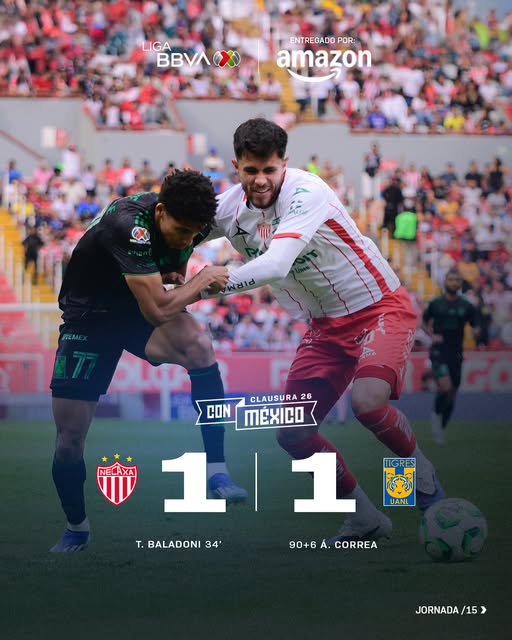 Necaxa y Tigres protagonizaron un cierre dramático en la Jornada 15 del Clausura 2026, al empatar 1-1 en el Estadio Victoria en un partido que se definió en los últimos segundos. Cuando todo parecía indicar que los Rayos se quedarían con una victoria clave, apareció Ángel Correa para cambiar la historia.