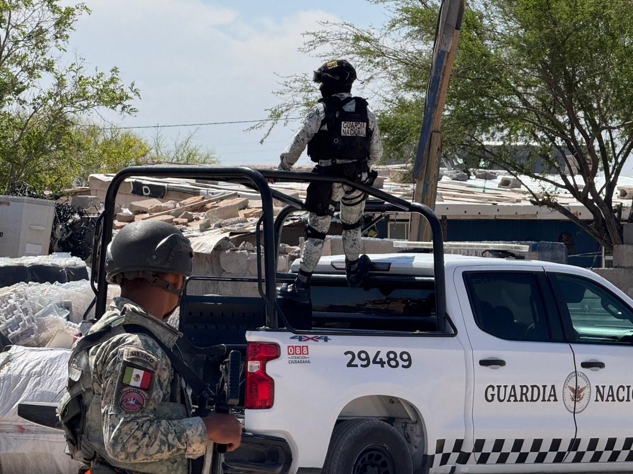 En el lugar participa un binomio canino K9, mientras que la zona permanece acordonada y bajo resguardo de elementos del Ejército Mexicano.