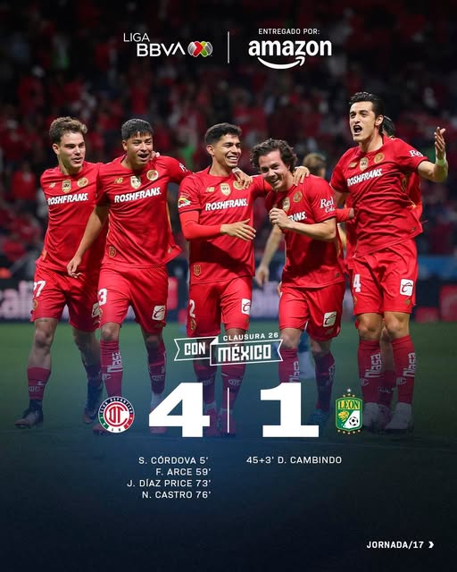 A pesar de haberse quedado con 10 jugadores, Jorge Díaz Price puso el 3-1 y dos minutos después Nicolás Castro culminaría la goleada que pone momentáneamente a Toluca como cuarto general a espera de que culmine la última jornada.